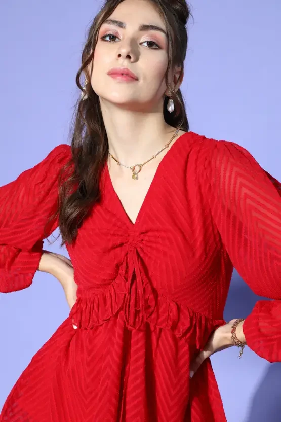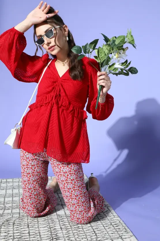 Neck V-Neck Sleeve Style Regular Sleeves Fit Regular Fabric Polyester Type Regular Top Pattern Striped Color Red Pack of 1 Fabric Care Regular Machine Wash