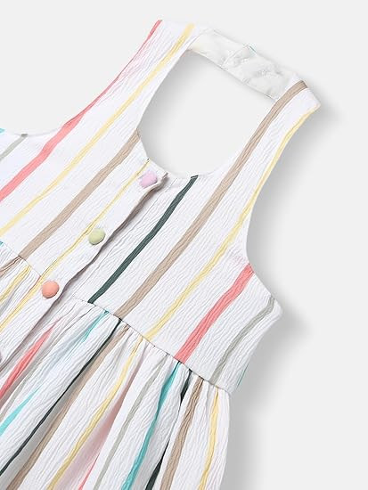 Girl's Colourful Printed Fit & Flare Cotton Dress |