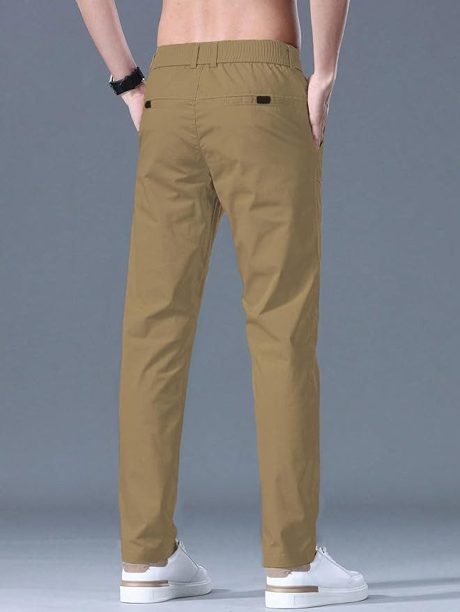 This is a solid casual trouser featuring a buttoned waist, designed with flat-front styling. It is a stylish casual pant for men that can be paired either to fit a smart casual or even a formal look.