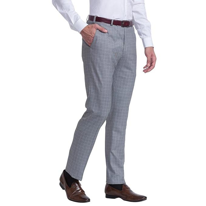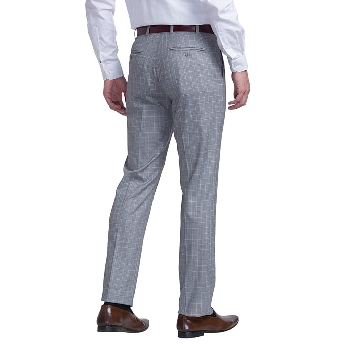 Fabric : Polyester Blend Fit Type : Contemporary Fit Color : Dark Grey Pleat : Flat Front Pattern : Checks
