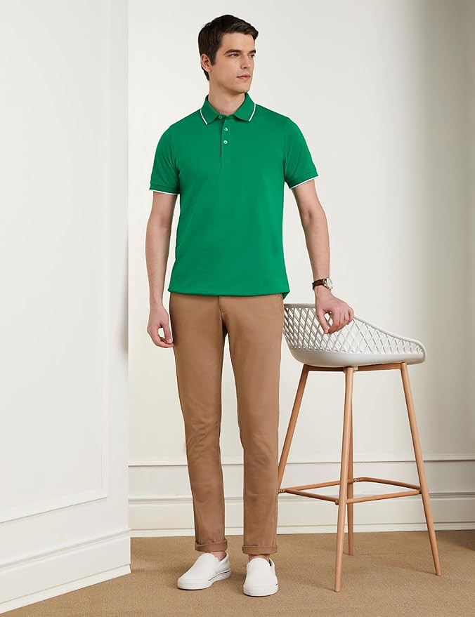 Anti curl collar made with all over elastane along with jacquard tipping Superior craftsmanship for that clean finish