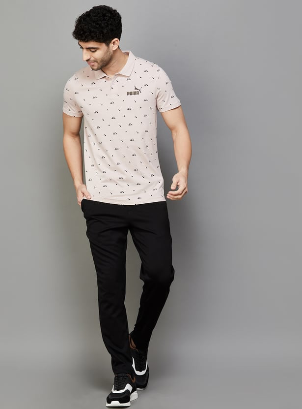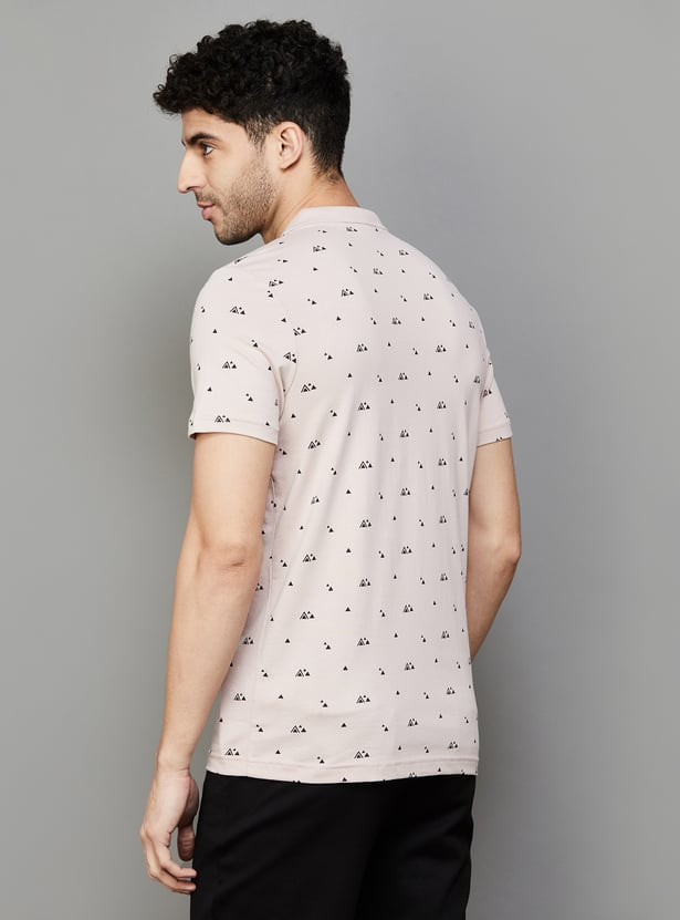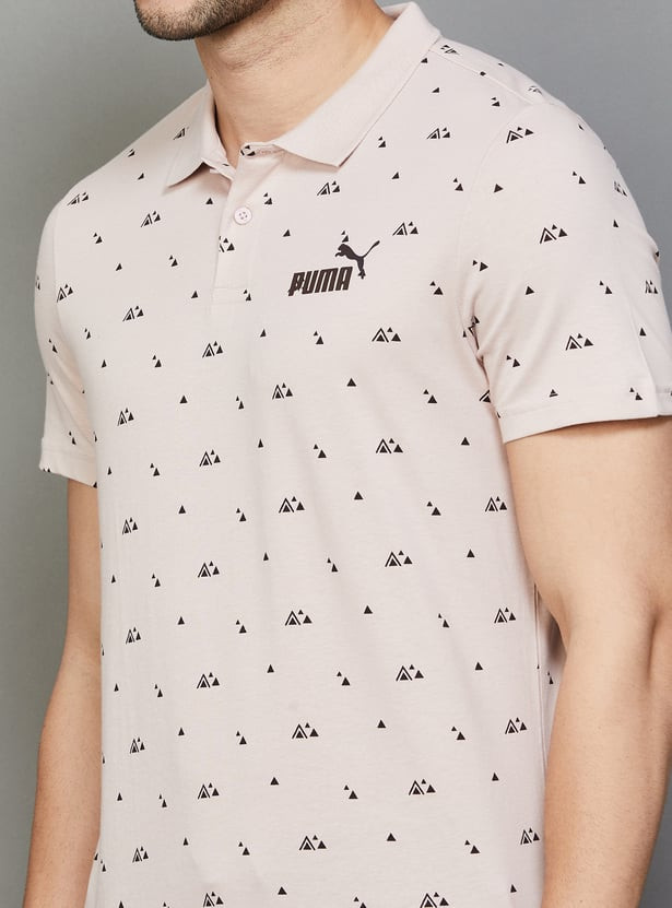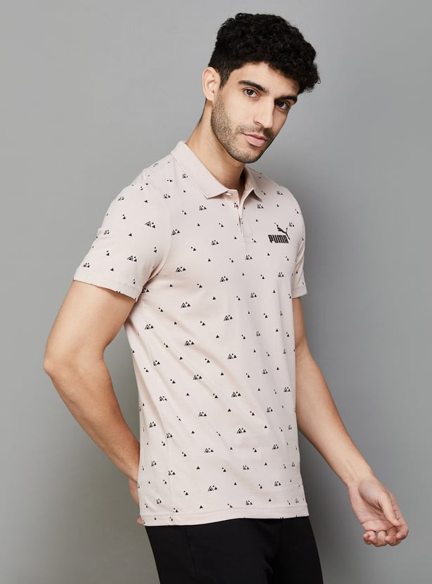 Designed with a printed fabric with contrast collar and sleeve hems, this t-shirt features a polo collar and half sleeves and is ideal to add to any athletic wardrobe. Its convenient button closure contributes to its stylish look while also ensuring a secure fit.