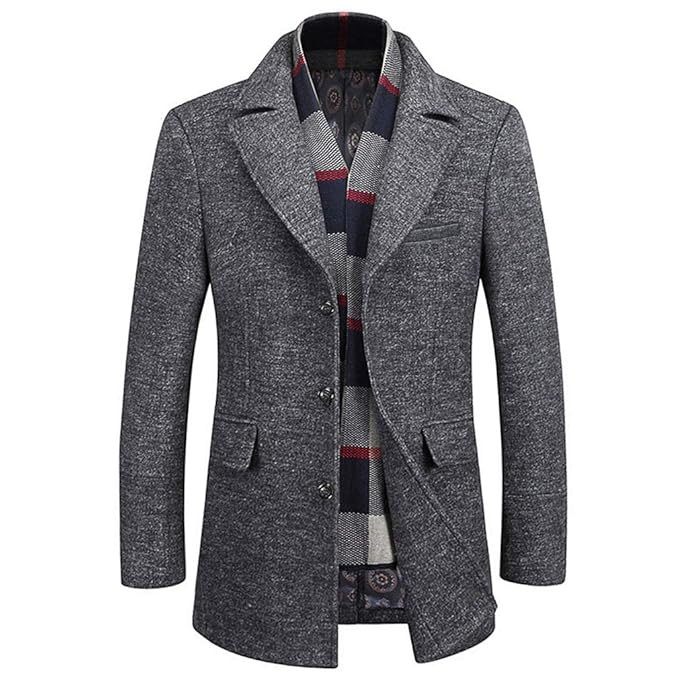 Men's Casual Trench Coat Slim Fit Notched Collar Long Jacket Overcoat Single Breasted Pea Coat wih Pockets