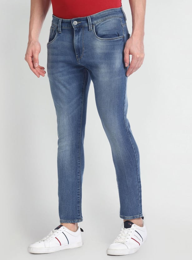 Elevate your fashion game with these curve-hugging jeans that offer unparalleled comfort and style. Featuring a button closure and zipper fly, along with convenient belt loops and multiple pockets, they're as practical as they are trendy. The tapered fit and stonewashed finish make them a must-have addition to your wardrobe.