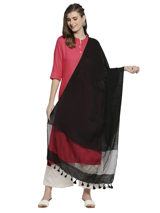Showcasing a organza border with tassels at the bottom, this linen dupatta by dupatta bazaar will lend a polished finish to your traditional look!