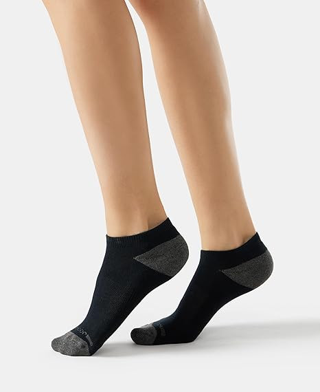 Women's Cotton Nylon Blend Solid Low Show Socks with Stay Fresh Treatment (Pack of 2)