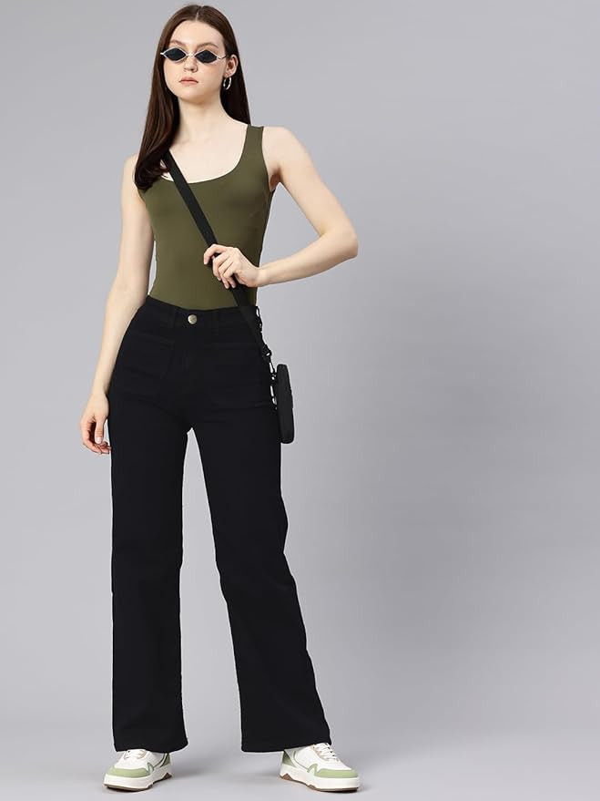 Fashion design: High Rise Wide leg, zipper and button closure, pockets on the front and back. Comfort fabric: Button bootcut trousers for women is made of 85%Cotton+15%Lycra. Loose style fit to meet different body types as much as possible. Easy to match: The straight wide leg jeans for women great to pair with your blouse, vests, shirts, sweaters, coats and so on, a must-have womens jeans in your wardrobe all year round.