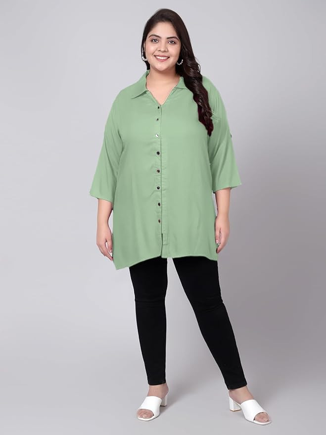 Women's Plus Size Solid Rayon Longline Casual Shirts