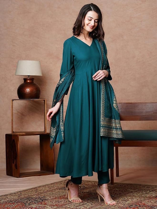 This set includes: 1 Kurta and 1 Pant with Dupatta || Work :- Solid and Dupatta Printed || Neck Style:- Round Neck Colour Declaration : There might be slight variation in the actual color of the product due to different screen resolutions. Ocassion: Traditional wear, Casual Wear, party wear,