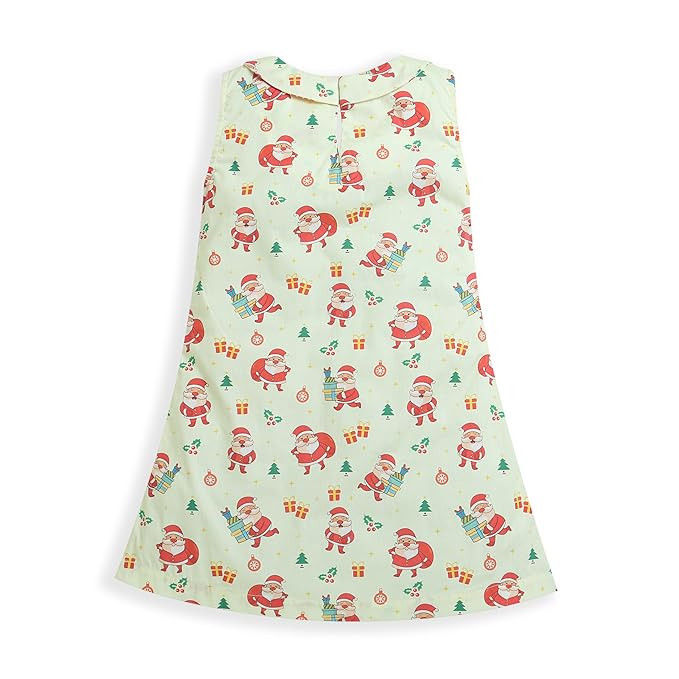 ZIP ZAP ZOOP Light Green & Red All Over Christmas Print Elegant Christmas Sleeveless Dress