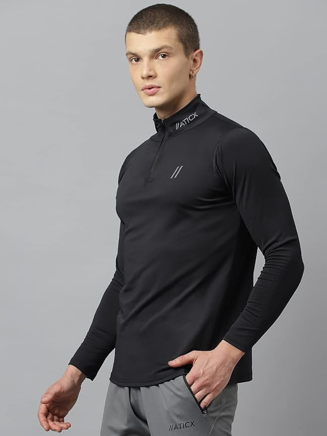 Men’s Slim Fit Polyester Full Sleeve T Shirt - Compression Tight Top Base Layer with Zip for Gym, Cycling, Running