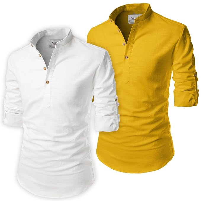 Men Cotton Full Sleeve Casual Mandarin/Chinese Collor Slim Fit Short Kurta for Men and Boys (Pack of 2