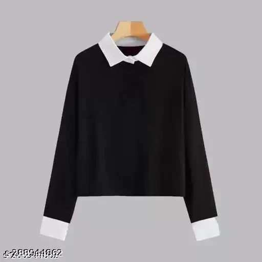Pinovo Women's full Sleeve Premium white colar Tshirt