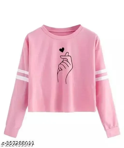 Crop Length Hood neck Full Sleeve Women printed tshirt