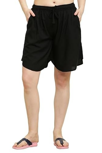 Women's Loose Fit Rayon Culotte Shorts - Above Knee Length, Lightweight Summer Casual Wear, Elastic Waistband with Adjustable Drawstring, Comfortable Shorts, Trendy Everyday Bottoms
