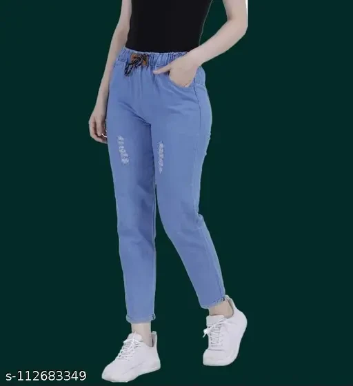 Stretchable pants for women| Women denim joggers |Jeans denim shorts |White flared pants | Denim cargo pants | Trendy solid denim jeans for women