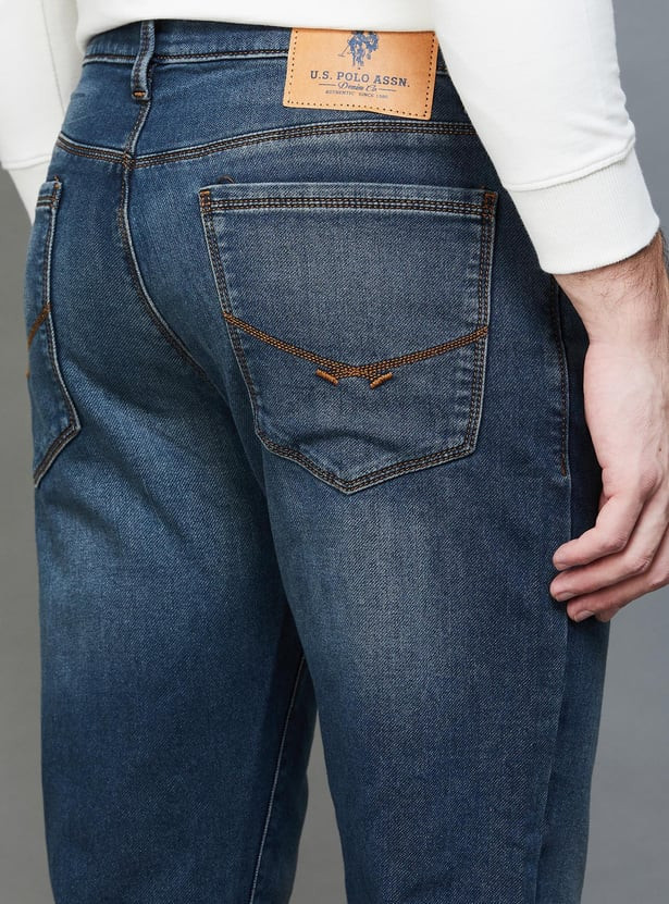 A versatile yet sleek staple, this pair of stylish skinny-fit jeans is crafted with a 5-pocket construction that ensures maximum utility and comfort. It is highlighted by a washed effect for an enhanced look, a button and zipper fly for a secure fit, and also includes waist loops for a belt.