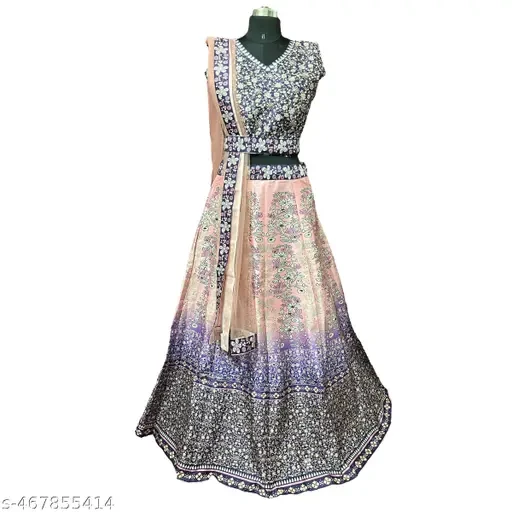 Women's Hot Fix Solid Color Satin Moss Saree with Unstitched Blouse Material