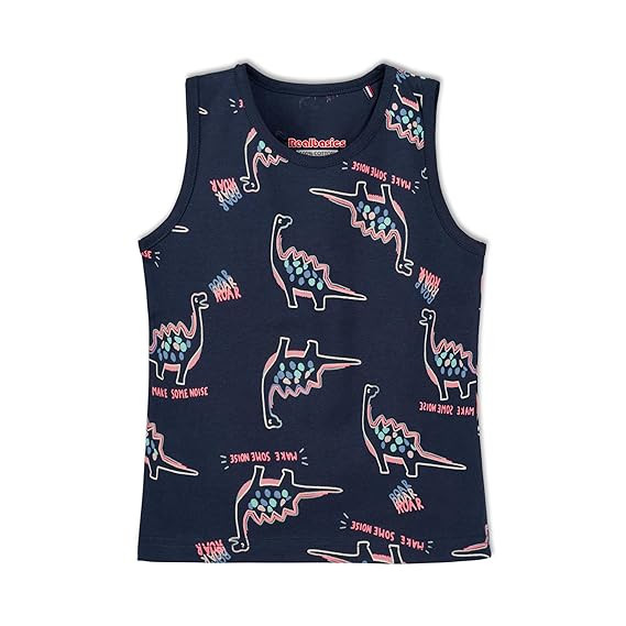 ✔ Made of 100% pure cotton, comfortable for all seasons ✔ Bright Colors, Bold graphics, Tag free Crew neck tees ✔ Trusted Real Basics quality, exclusive on Amazon ✔Sleeveless, Regular fit ✔ Design will be same as shown in the image