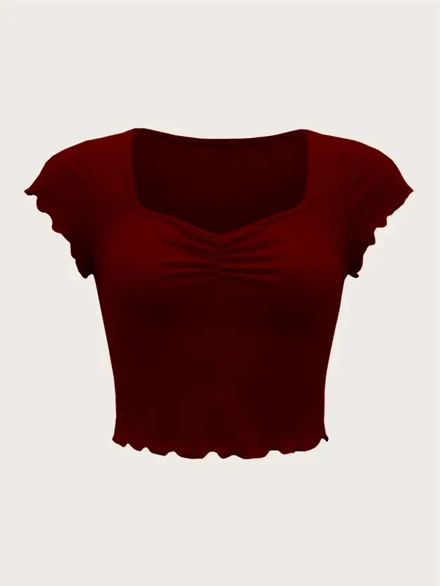 Casual Ruffled Sleeves Solid Women Maroon Top