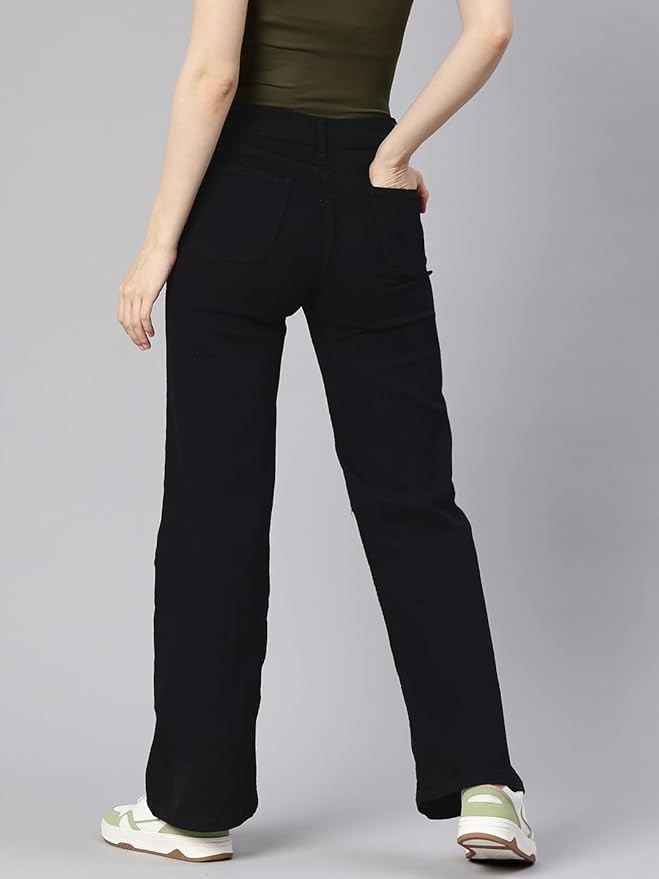 Fashion design: High Rise Wide leg, zipper and button closure, pockets on the front and back. Comfort fabric: Button bootcut trousers for women is made of 85%Cotton+15%Lycra. Loose style fit to meet different body types as much as possible. Easy to match: The straight wide leg jeans for women great to pair with your blouse, vests, shirts, sweaters, coats and so on, a must-have womens jeans in your wardrobe all year round.