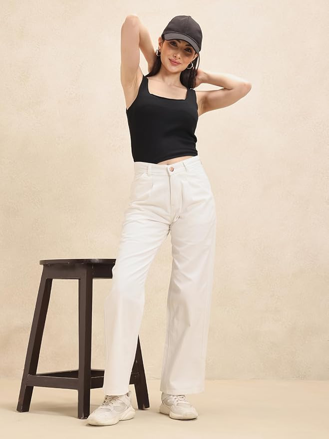 STYLISH AND COMFORTABLE: These Women’s Cargo Jeans are baggy bootcut denim jeans with functional pockets, crafted from a premium blend of cotton and Lycra fabric, offering a perfect balance of style and comfort. ENHANCED FLEXIBILITY: The inclusion of a touch of stretch in the fabric ensures flexibility, allowing for ease of movement while maintaining their shape wear after wear in these High-Waist Jeans for Women.