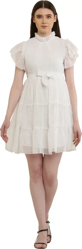 Women Skater White Above Knee/Mid Thigh Length Dress