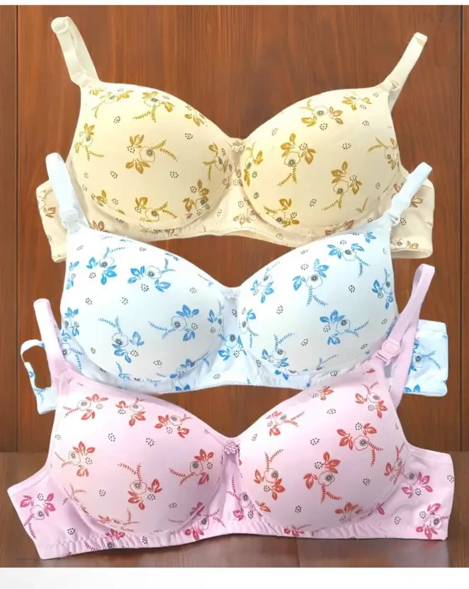 Pack of 3 Women Push-up Lightly Padded Bra (Pink, Blue, Beige)